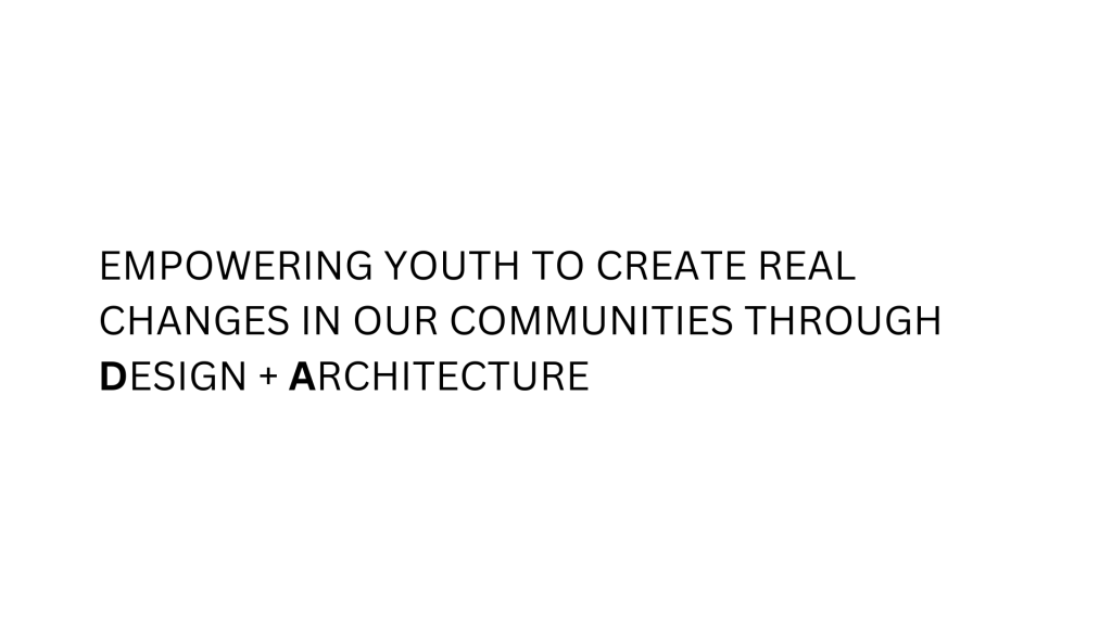 Through design competitions, community initiatives, workshops, and fundraising, we highlight the importance of design & architecture, and how youth can play a role in shaping our communities.