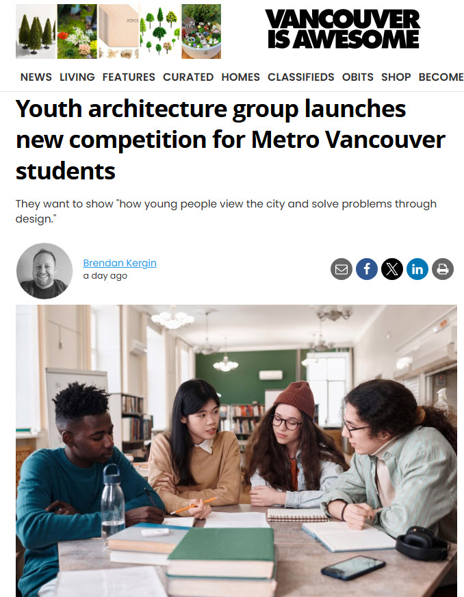 Vancouver Is Awesome has recognized the Design for Change competition for its innovative approach to engaging young designers in community-focused projects. The competition encourages students to tackle real-world issues in Vancouver, fostering creativity, problem-solving, and civic involvement. It empowers the next generation of architects to make a meaningful impact.